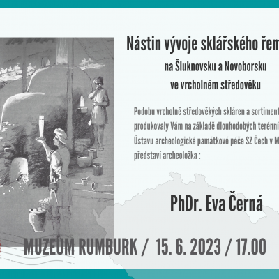 Nástin vývoje sklářského řemesla na Šluknovsku a Novoborsku ve vrcholném středověku místomuzeum Rumburk Přijďte si poslechnout zajímavou přednášku archeoložky PhDr. Evy Černé. 15. 06. 2023 - 17:00 Jak vypadala podoba vrcholně středověkých skláren a sortiment, který produkovaly? To a jiné se dozvíte 15. 6. 2023 v 17 hodin u nás v muzeu.
