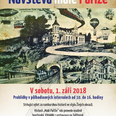 Závěr prázdnin si můžete zpříjemnit návštevou rumburského muzea, kde je pro návštěvníky všech věkových kategorií na sobotu 1. září 2018 připraven "Výlet za rumburskou historií ve stylu živých obrazů" nazvaný pořádající hereckou agenturou Modua "Návštěva Malé Paříže severu", kdy nová muzejní expozice "Střípky z historie" doslova ožije starými příběhy a historkami.