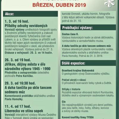 Program - březen a duben 2019 místoMuzeum Rumburk 01. 03. 2019 - 09:00 Nabídka výstav a akcí v rumburském muzeu.