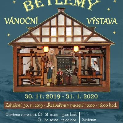 Tradiční vánoční výstava "Betlémy" v rumburském muzeu bude slavnostně zahájena oblíbenou komponovanou akcí "Řezbaření v muzeu" 30. listopadu 2019 v 10.00 hod. Do 16.00 hod. představí svou zručnost místní umělci, ať řezbáři, vazačka věnců či paličkářka. Do vánočně vyzdobeného muzea, (kde zůstávají ozdobou nepřekonatelná betlémářská díla Dominika Rudolfa, Franze Xavera Schütze či Floriana Liebsche), mohou návštěvníci zavítat obdivovat restaurované torzo proslulého Kiesslichova pohyblivého betlému, jež býval kdysi evropsky raritní chloubou Rumburku. Vedle historických prací budou prezentována současná díla. V tomto roce se mohou návštěvníci potěšit poetickým betlémem děčínského řezbáře Ing. Vladimíra Cejnara či keramikou mikulášovické umělkyně Simony Machorkové, betlémy, vyrobenými dětmi ze ZŠ Chřibská, skautským betlémem a dalšími betlémy z muzejní sbírky. Spolek jiříkovských betlémářů zapůjčil papírové betlémy výtvarnice Jany Moštkové.Výstava betlémů potrvá do 31.1. 2020.