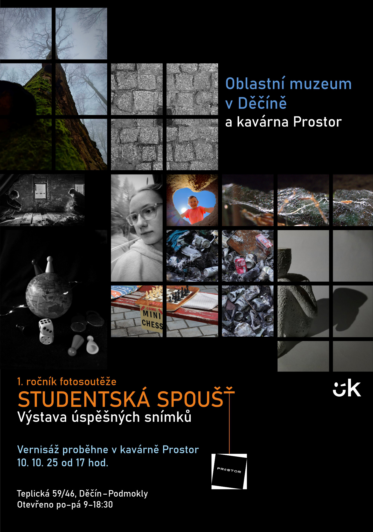 Vernisáž výstavy úspěšných snímků 1. ročníku fotosoutěže Studentská spoušť místokavárna Prostor, Teplická 59/46, Děčín IV-Podmokly Studenti zabodovali! 10. 10. 2025 - 17:00 Srdečně Vás zveme na vernisáž, která se koná v pátek 10. října 2025 od 17 hodin v kavárně Prostor (nároží ulic: Prokopa Holého a Teplická). Vystaveny budou úspěšné fotografie přihlášené do 1. ročníku fotosoutěže Studentská spoušť.